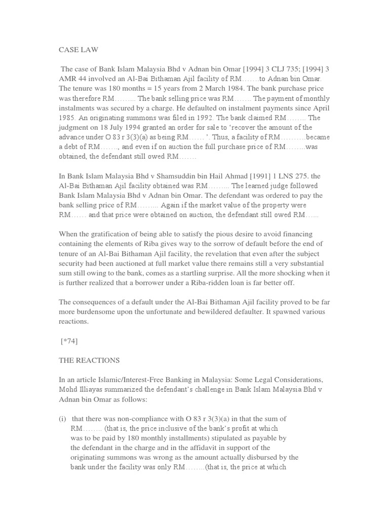 Case Of Bank Islam Malaysia Bhd V Adnan Bin Omar Banks Contractual Term