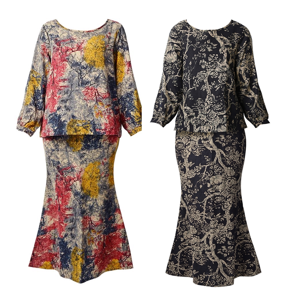 Matwsec Baju Kurung Moden Plus Size Cotton Muslimah Set Fashion Raya Floral Design Yellow Red Shopee Singapore
