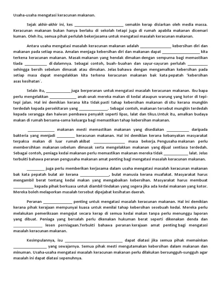 Contoh Karangan Spm Usaha Usaha Mengelakkan Keracunan Makanan