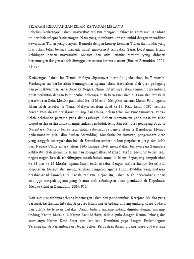 Sejarah Kedatangan Islam Ke Tanah Melayu