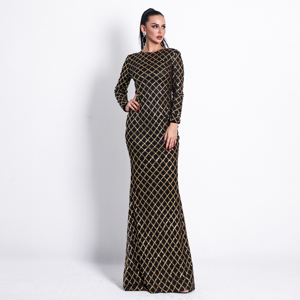 Formal Dress Wedding Kurung Party Dinner New Black Gold Maxi Baju Dresses Sequin Shopee Malaysia