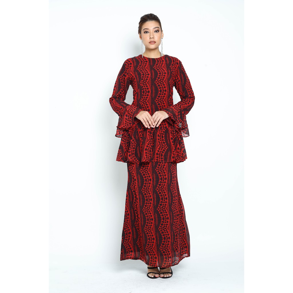 Minimalist Frilly Modern Kurung Style Melor In Garnet Red Shopee Singapore
