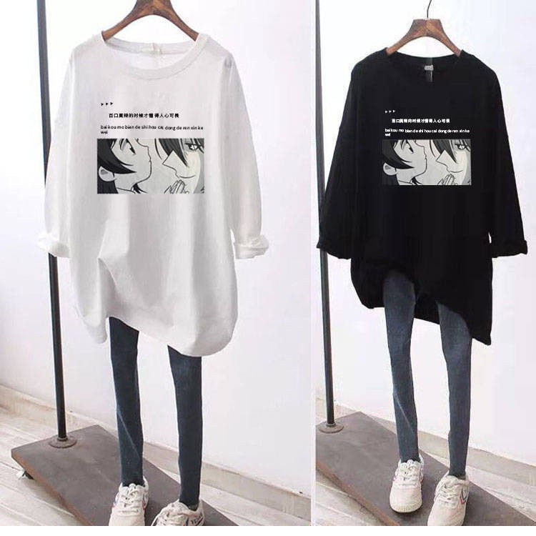 Baju T Shirtsaiz Besar Lemak Wanita Mm Putih Panjang Lengan T Shirt Wanita Longgar Longgar Langsing Pertengahan Panjang Baju Baru Korea Versi Wanita Baju Shopee Singapore
