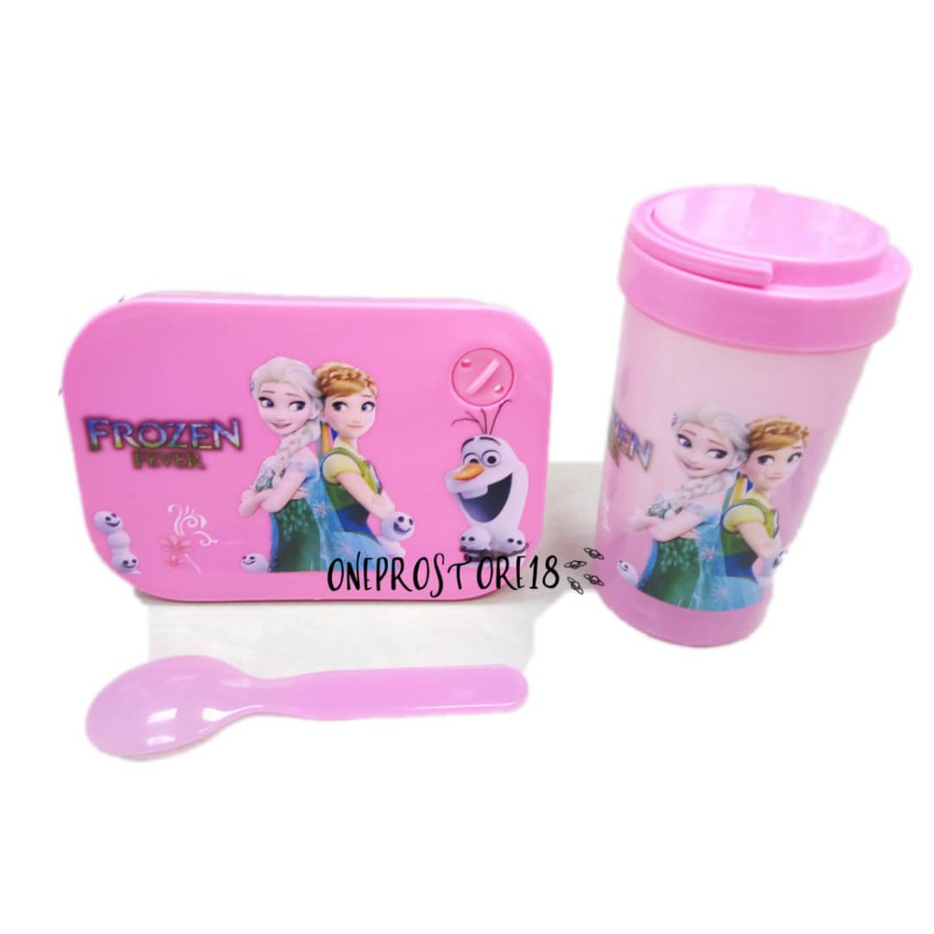 3 In 1 Kids Lunch Box Set Cartoon Design With Water Bottle And Spoon Food Container