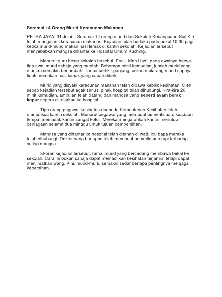 Karangan Berita Keracunan Makanan Di Sekolah