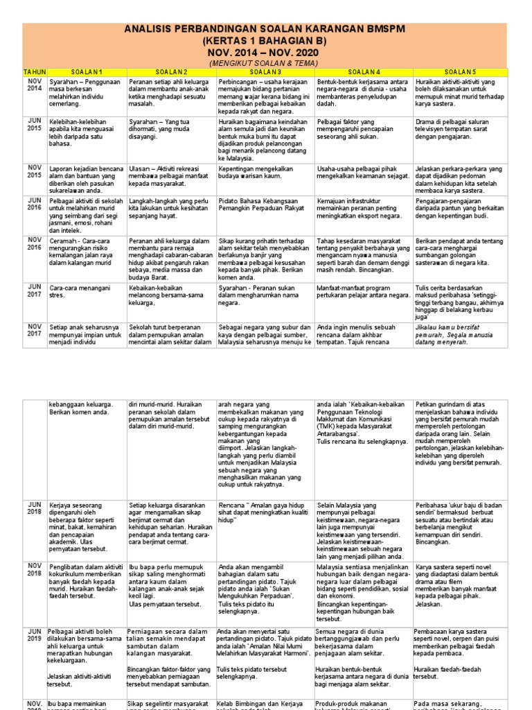 Analisis Perbandingan Soalan Karangan Bm Spm Terkini 1