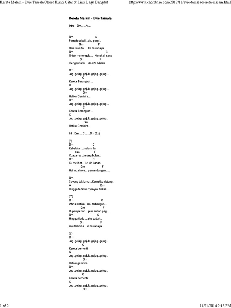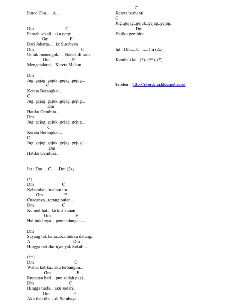 Notasi Lagu Dangdut Kereta Malam Lagu Lirik Lagu Not Musik