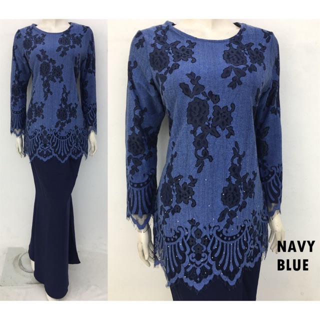 Vmd034 Navy Baju Kurung Moden Lace Batik Fashion African Print Fashion Dresses