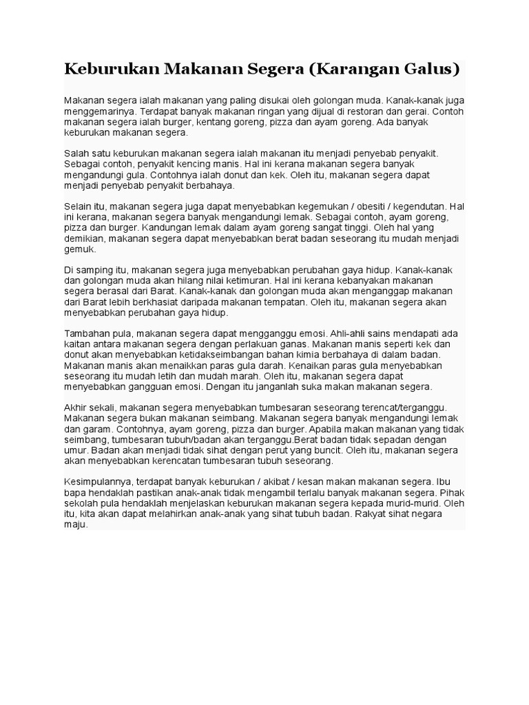 Bahasa Melayu Spm Keburukan Makanan Segera Karangan Galus