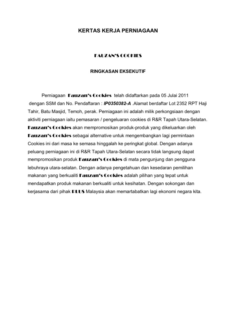 Doc Contoh Kertas Kerja Rancangan Perniagaan Shahrin Hamid Academia Edu