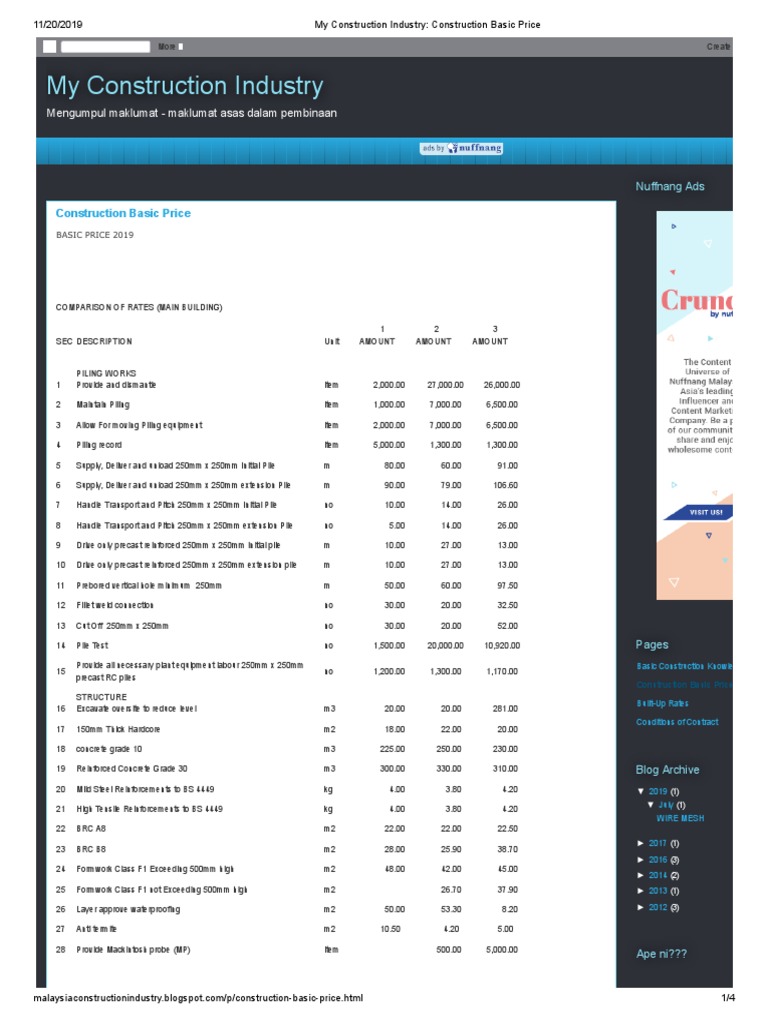 Construction Basic Price 2019 Deep Foundation Concrete