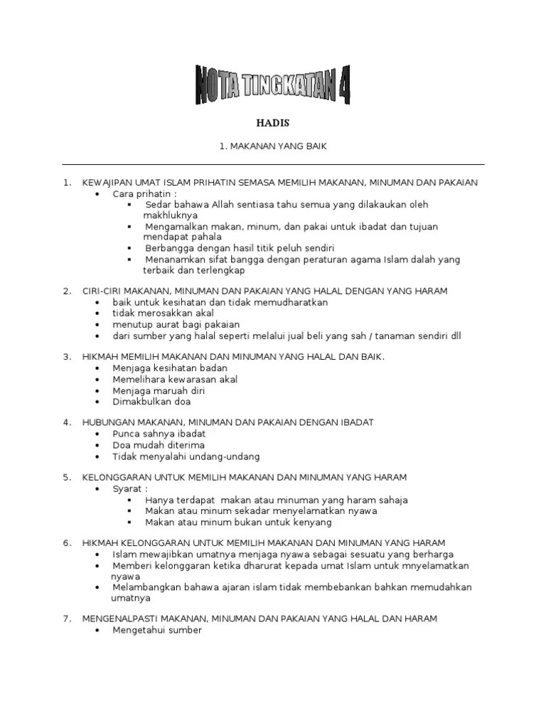2 Nota Pecutan Terakhir Spm Kertas 2 2014 Hadis Seaview