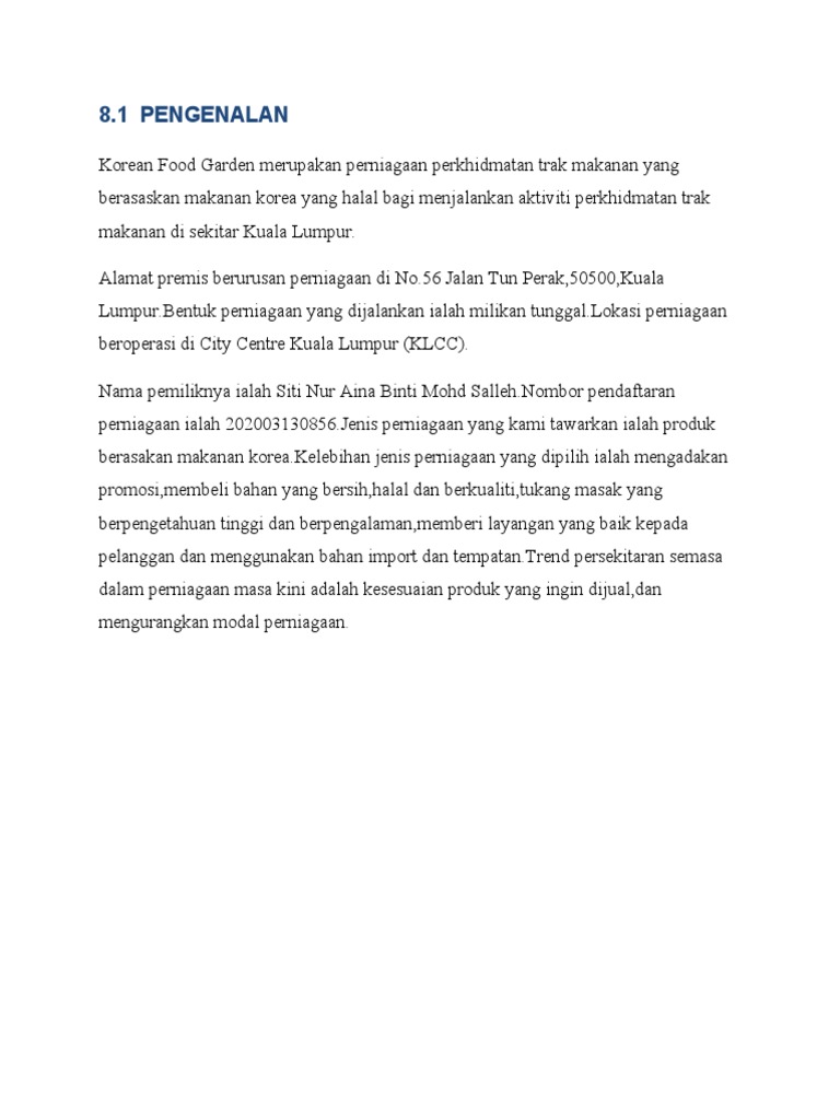 Contoh Perniagaan Ringkasan Eksekutif Perniagaan Makanan Korea Yang Halal