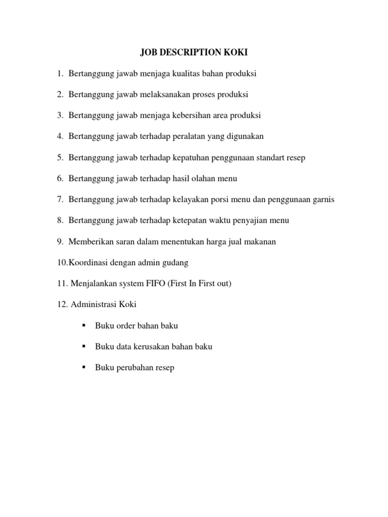 Contoh Template Job Description Chef Restoran Robin Komunitas Professional Terverifikasi Terbesar Di Indonesia