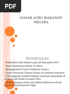 Dasar Agromakanan Dasar Jaminan Bekalan Makanan