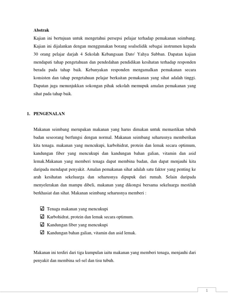 Kepentingan Kajian Pemilihan Makanan Yang Sihat Dan Seimbang