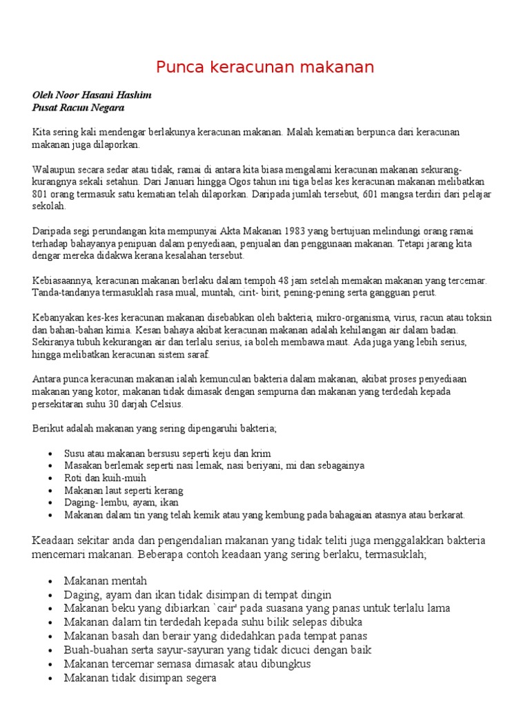 Punca Punca Keracunan Makanan Ulasan