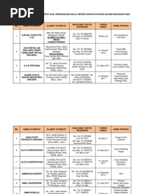 Senarai Kilang Makanan Di Johor Bahru