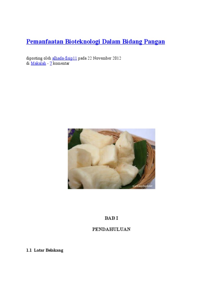 Pemanfaatan Bioteknologi Dalam Bidang Pangan Docx Docx Document