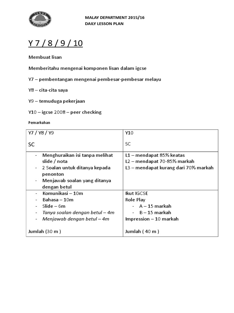 Malay Department 2015 16 Daily Lesson Plan Pemarkahan