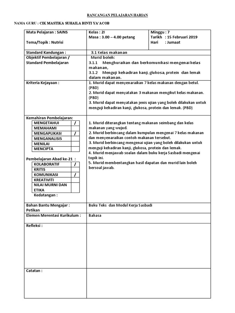 Lesson Plan Harian Sains Chandra Lesson Plan Educational Assessment