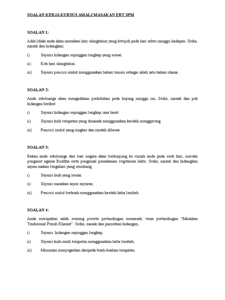 Contoh Soalan Amali Masakan Bagi Membuat Jualan Makanan