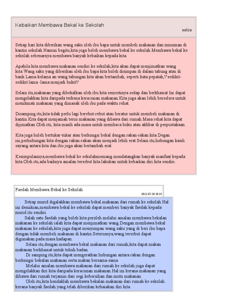 Suka Manis Manis Yang Sihat Faedah Membawa Bekal Ke Sekolah