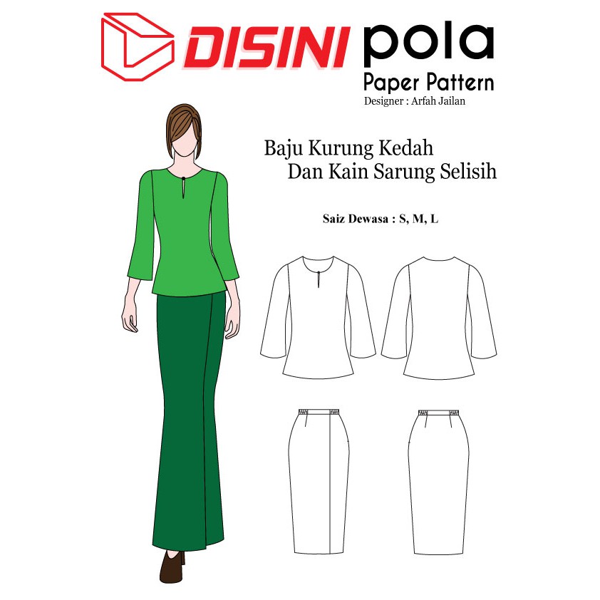 Pola Pakaian Baju Kebaya Tradisional Dan Kain Sarung Selisih Sewing Pattern By Disini Designer Arfah Jailan Lazada