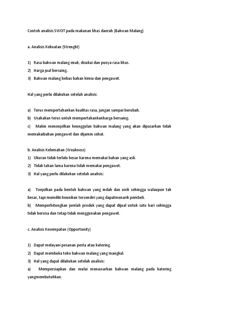 Contoh Analisis Swot Pada Makanan Khas Daerah