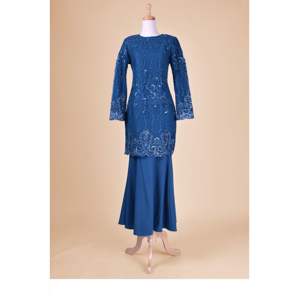 Baju Kurung Lace Clemence Teal Shine Muslimahclothing Com
