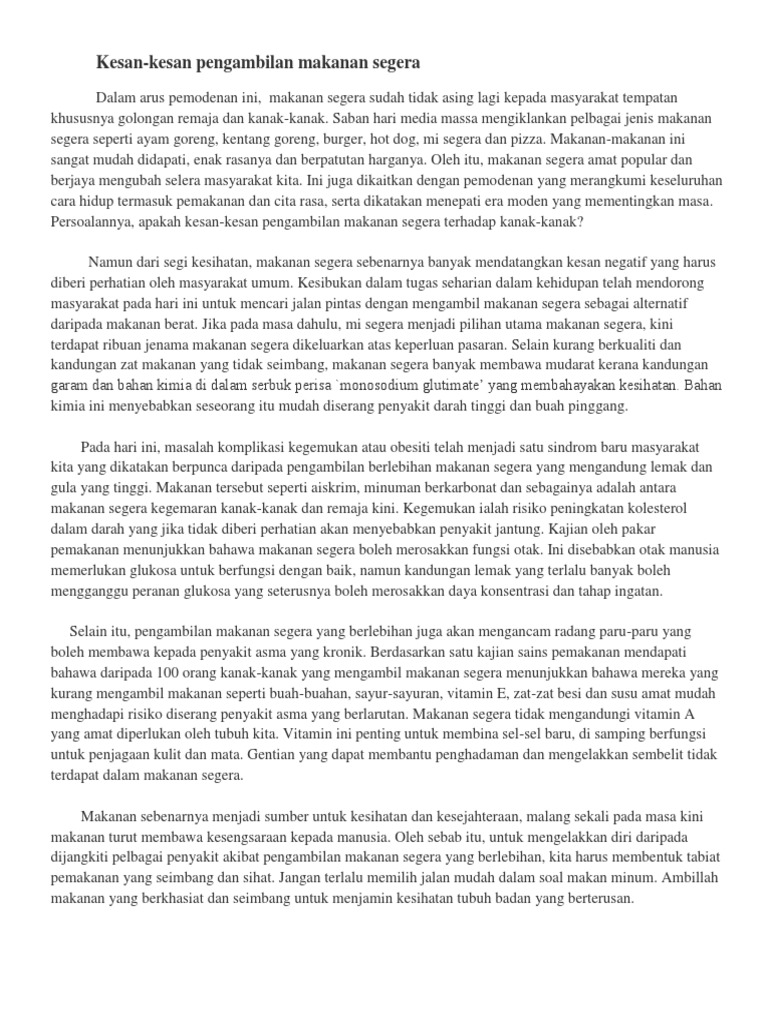 Faktor Pengambilan Makanan Segera Dalam Kalangan Masyarakat